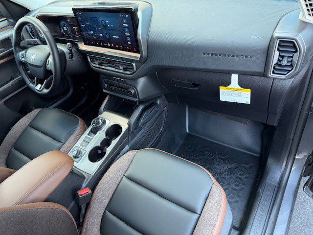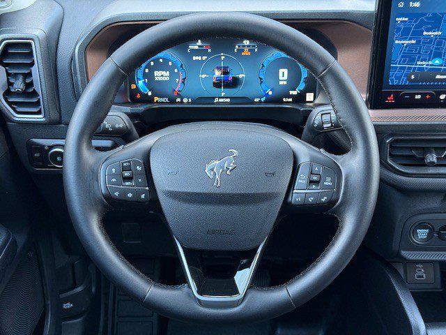 I got a 2025 Big Bend with the black diamond off road package. The steel modular front and rear in combination with bush guard gives this year model. A very aggressive off road look. With the ability to easily mount accessories and power them with the factory installed auxiliary switches. Hitch receiver seamlessly mounted into the rear steel bumper flanked by some very chunky recovery points. The upgraded aluminum rims wrapped with Continental all-terrains. It make this the most capable bronco sport yet. The interior of the 2025 has been updated with a new 13 inch touchscreen with Android Auto and apple car play. The lines of the dash flow elegantly from the new infotainment screen to the new all digital 12 inch gauge chaster. Toggling through the different modes on the gauge chaster is very intuitive, and all the displays are laid out very cleanly. Moving from gauge chaster the center storage cubby just below the infotainment screen there is a wireless charger and USB/ USB-c ports. The passenger side of that same cubby gets a handle and a matching one on the roof just in case the driver bucks a little too much. The passenger also gets a mesh storage area. That leads us to the fact this vehicle has tons of storage options all throughout. You have pockets on the sides of the front two seat big enough for the latest new phones. Very generous door storage on all four doors plus huge glove box and center console with 12 volt outlet. The back side of the center console has air vents and another 12 volt outlet plus a 110 outlet. Now getting to the cargo area it is massive for a crossover SUV. With off road package you get a cargo management system and a very nice rubber mat. Under that there is a full size tire plus scissor jack and funnel to use with the capless filler system. On the liftgate there isa pair of very bright led lights turned on with a switch in the cargo area. This feature packed vehicle has tons awesome gadgets and hidden a little homages I spend all day just talk that. At the end of the day it is car. So how does it drive. It is wonderful, the steering and pedal response is beautiful. Rides very smooth and little to no road noise going down the highway. The active cruise control and co-pilot 360 have been very handy. The car literally drives itself most of the time. There is not enough good things I could same about this car. I love it and you pick one too. You will see what I mean. - 5.0