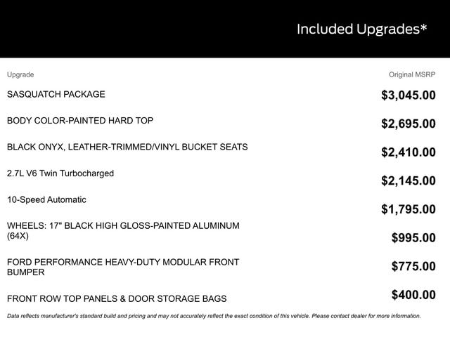 - SeatType: Leather-Trimmed/Vinyl Seats – Black Onyx
