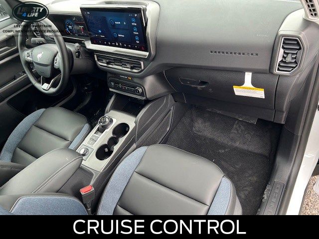 I got a 2025 Big Bend with the black diamond off road package. The steel modular front and rear in combination with bush guard gives this year model. A very aggressive off road look. With the ability to easily mount accessories and power them with the factory installed auxiliary switches. Hitch receiver seamlessly mounted into the rear steel bumper flanked by some very chunky recovery points. The upgraded aluminum rims wrapped with Continental all-terrains. It make this the most capable bronco sport yet. The interior of the 2025 has been updated with a new 13 inch touchscreen with Android Auto and apple car play. The lines of the dash flow elegantly from the new infotainment screen to the new all digital 12 inch gauge chaster. Toggling through the different modes on the gauge chaster is very intuitive, and all the displays are laid out very cleanly. Moving from gauge chaster the center storage cubby just below the infotainment screen there is a wireless charger and USB/ USB-c ports. The passenger side of that same cubby gets a handle and a matching one on the roof just in case the driver bucks a little too much. The passenger also gets a mesh storage area. That leads us to the fact this vehicle has tons of storage options all throughout. You have pockets on the sides of the front two seat big enough for the latest new phones. Very generous door storage on all four doors plus huge glove box and center console with 12 volt outlet. The back side of the center console has air vents and another 12 volt outlet plus a 110 outlet. Now getting to the cargo area it is massive for a crossover SUV. With off road package you get a cargo management system and a very nice rubber mat. Under that there is a full size tire plus scissor jack and funnel to use with the capless filler system. On the liftgate there isa pair of very bright led lights turned on with a switch in the cargo area. This feature packed vehicle has tons awesome gadgets and hidden a little homages I spend all day just talk that. At the end of the day it is car. So how does it drive. It is wonderful, the steering and pedal response is beautiful. Rides very smooth and little to no road noise going down the highway. The active cruise control and co-pilot 360 have been very handy. The car literally drives itself most of the time. There is not enough good things I could same about this car. I love it and you pick one too. You will see what I mean. - 5.0