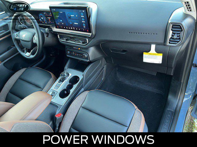I got a 2025 Big Bend with the black diamond off road package. The steel modular front and rear in combination with bush guard gives this year model. A very aggressive off road look. With the ability to easily mount accessories and power them with the factory installed auxiliary switches. Hitch receiver seamlessly mounted into the rear steel bumper flanked by some very chunky recovery points. The upgraded aluminum rims wrapped with Continental all-terrains. It make this the most capable bronco sport yet. The interior of the 2025 has been updated with a new 13 inch touchscreen with Android Auto and apple car play. The lines of the dash flow elegantly from the new infotainment screen to the new all digital 12 inch gauge chaster. Toggling through the different modes on the gauge chaster is very intuitive, and all the displays are laid out very cleanly. Moving from gauge chaster the center storage cubby just below the infotainment screen there is a wireless charger and USB/ USB-c ports. The passenger side of that same cubby gets a handle and a matching one on the roof just in case the driver bucks a little too much. The passenger also gets a mesh storage area. That leads us to the fact this vehicle has tons of storage options all throughout. You have pockets on the sides of the front two seat big enough for the latest new phones. Very generous door storage on all four doors plus huge glove box and center console with 12 volt outlet. The back side of the center console has air vents and another 12 volt outlet plus a 110 outlet. Now getting to the cargo area it is massive for a crossover SUV. With off road package you get a cargo management system and a very nice rubber mat. Under that there is a full size tire plus scissor jack and funnel to use with the capless filler system. On the liftgate there isa pair of very bright led lights turned on with a switch in the cargo area. This feature packed vehicle has tons awesome gadgets and hidden a little homages I spend all day just talk that. At the end of the day it is car. So how does it drive. It is wonderful, the steering and pedal response is beautiful. Rides very smooth and little to no road noise going down the highway. The active cruise control and co-pilot 360 have been very handy. The car literally drives itself most of the time. There is not enough good things I could same about this car. I love it and you pick one too. You will see what I mean. - 5.0