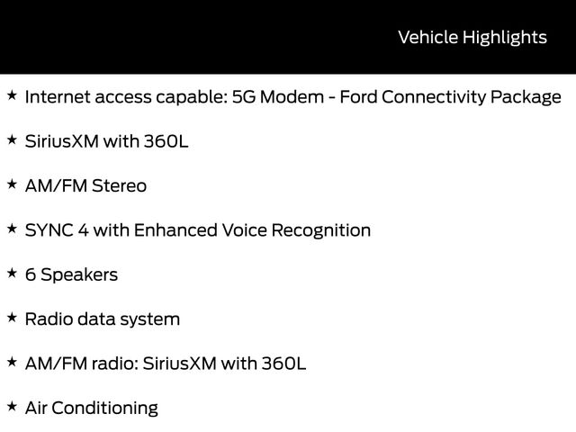 Beneath the rugged exterior lies a well-appointed interior, featuring a host of premium amenities designed to elevate your driving experience. Sink into the comfortable, supportive seats and enjoy the convenience of the Convenience Package, Equipment Group 200A Standard Package, and Ford Connectivity Package.