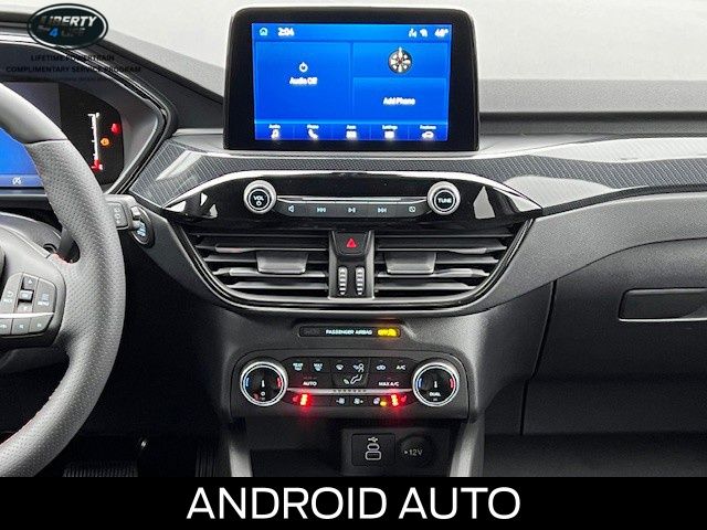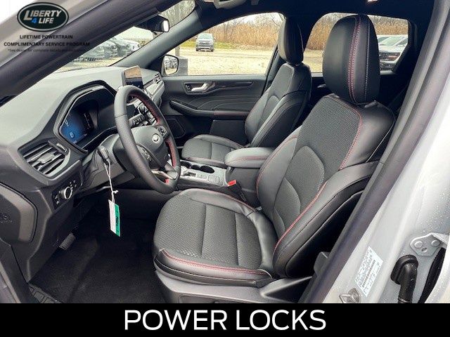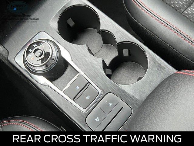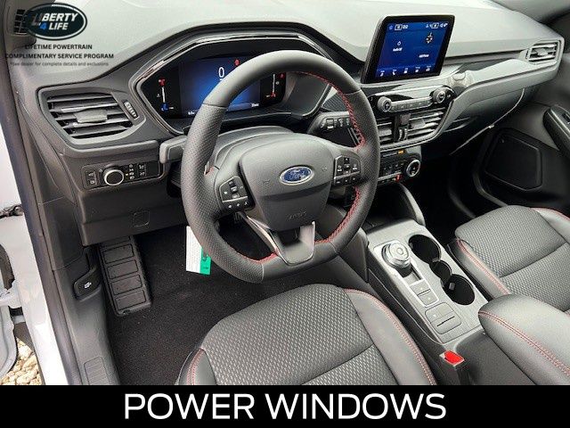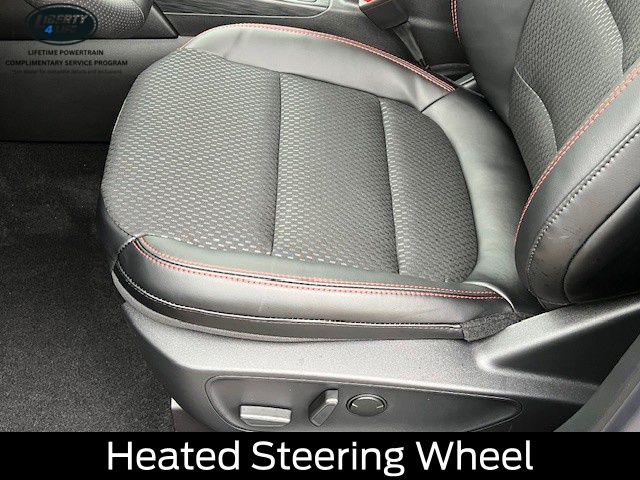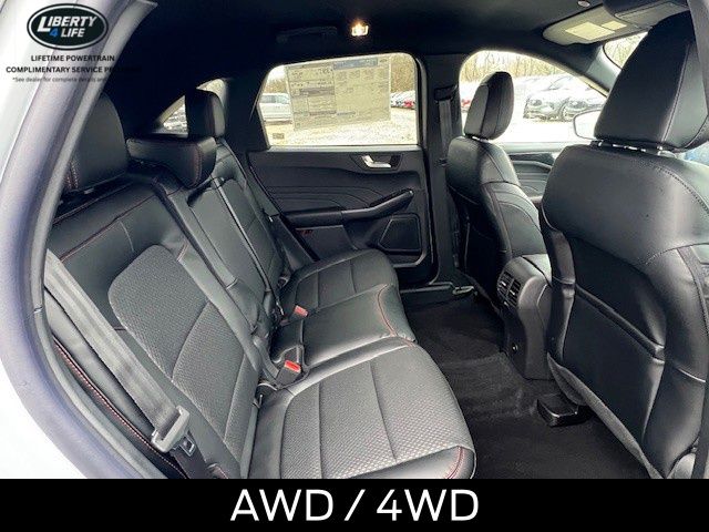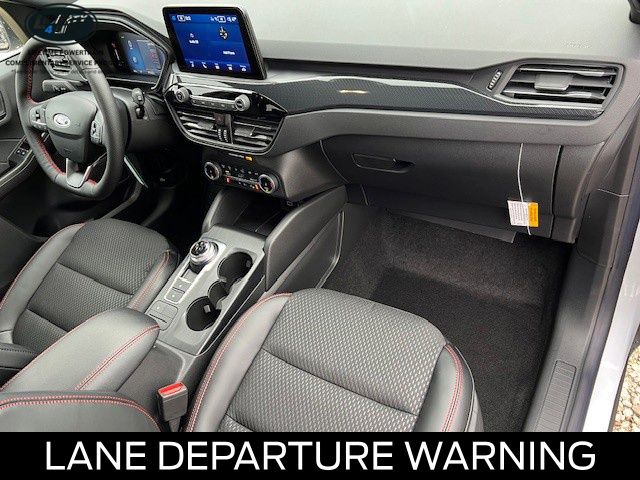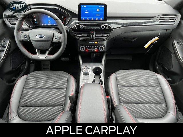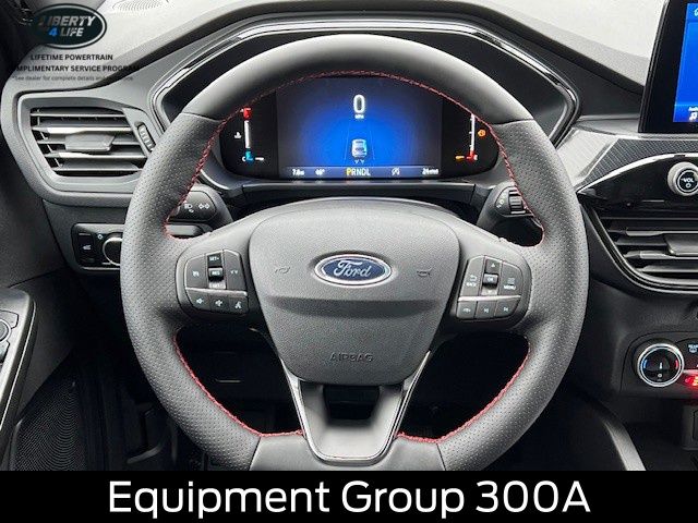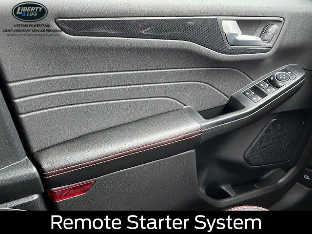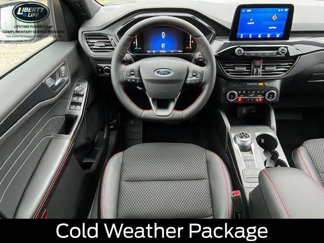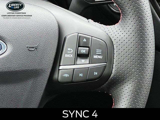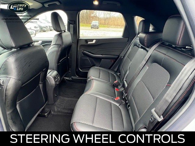 Elevate your driving experience with the premium features of the Escape ST-Line, including the Panoramic Vista Roof, Cold Weather Package, and Power Liftgate. Indulge in the comfort of Heated Front Row Seats, a Heated Steering Wheel, and Partial Vinyl/Cloth Front Sport Contour Bucket Seats with Red Stitching.
