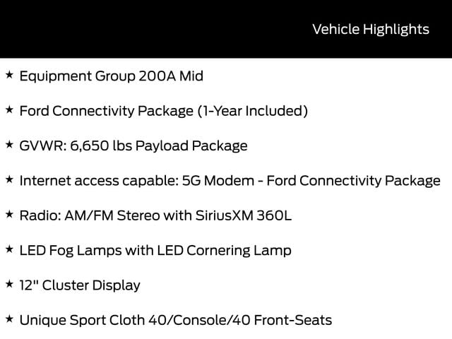 Elevating your driving experience, this F-150 STX boasts a 12" Cluster Display, LED Fog Lamps with LED Cornering Lamp, and Wheels: 20" Dark Gray Aluminum. The Electronic Locking with 3.73 Axle Ratio ensures exceptional traction and control, while the Ford Connectivity Package keeps you seamlessly connected.
