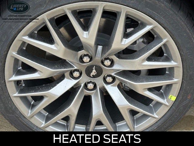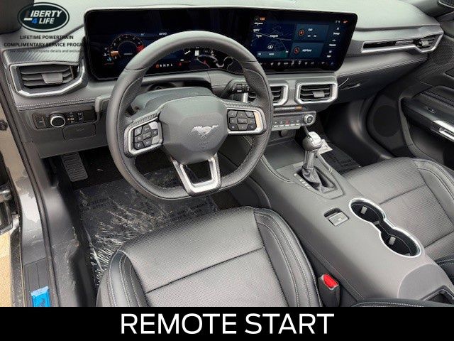 Exterior styling cues, such as the 20" Premium-Painted Aluminum Wheels and the sleek Gray finish, accentuate the Mustang's iconic silhouette. Step inside and be enveloped by the premium leather-trimmed bucket seats with color accents, creating an environment of both comfort and sophistication.